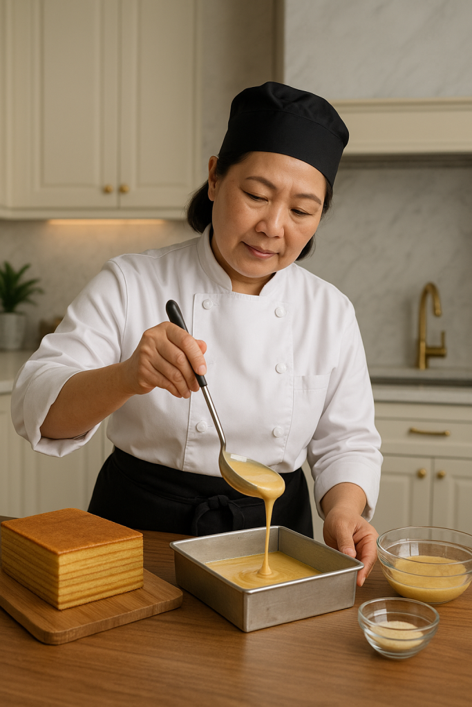 Setiap lapisan dipanggang manual satu per satu, memastikan lapis legit yang padat, lembut, dan beraroma kaya. bukan hasil produksi massal.